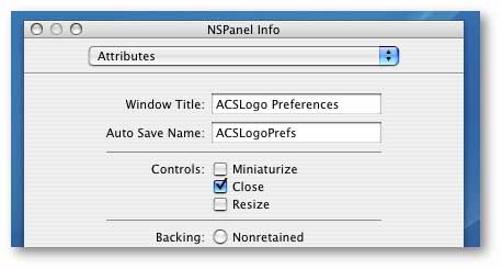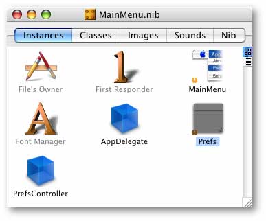 The other interface object that's in this nib file is the Prefs dialog window. It's called Prefs in the main window. Double-click on it to open it up.